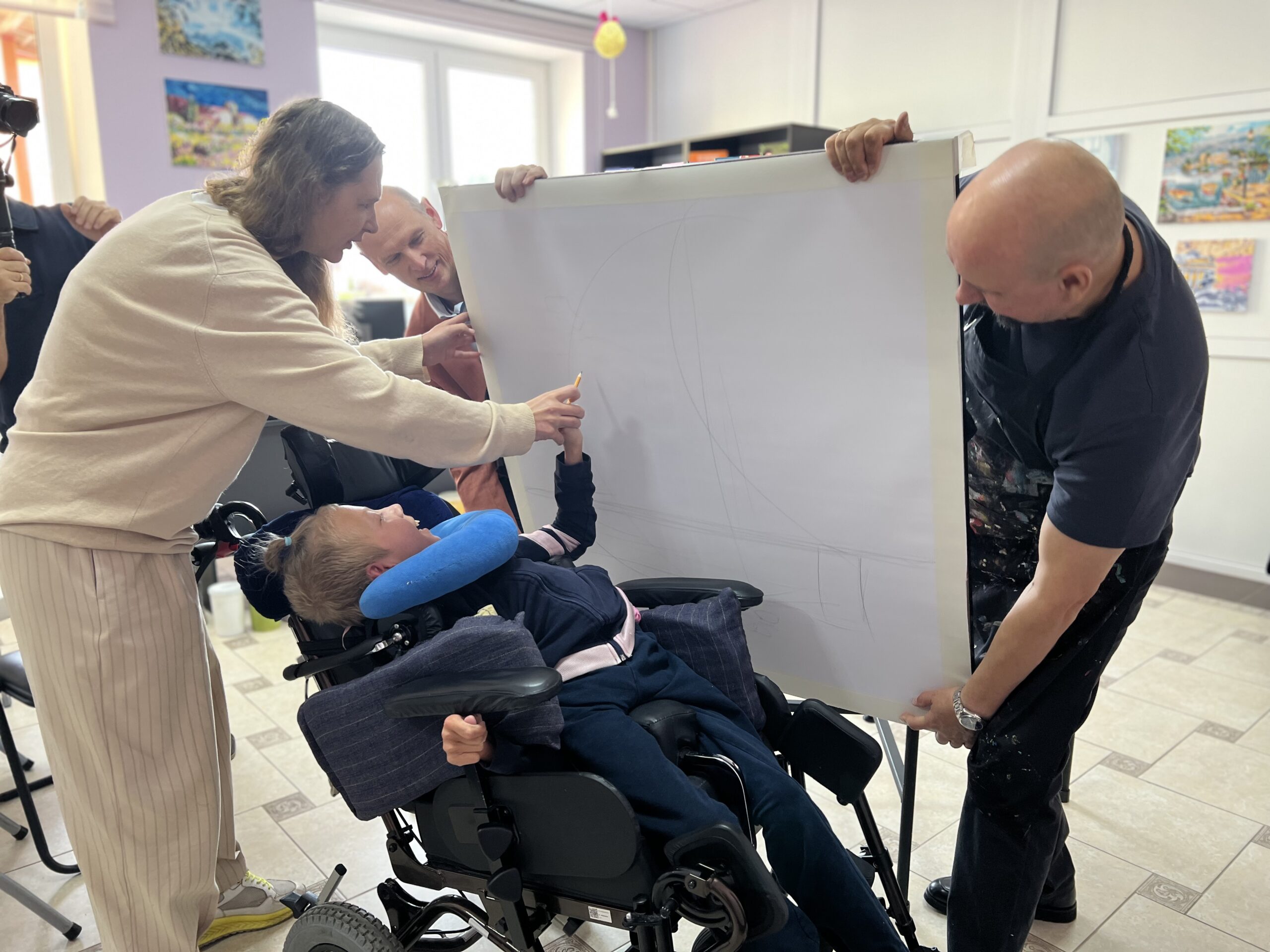 Когда художник Сергей Дас предложил Саше нарисовать то, о чём мечтает их душа, она закрыла глаза — и увидела море. Безграничное, голубое, под светом ласкового солнца. А посреди волн — корабль с розовым парусом, сияющим, будто рассвет. Этот парус — её мечта. Он несёт её туда, где нет боли, где тело не знает границ, где можно расправить крылья и лететь навстречу ветру.