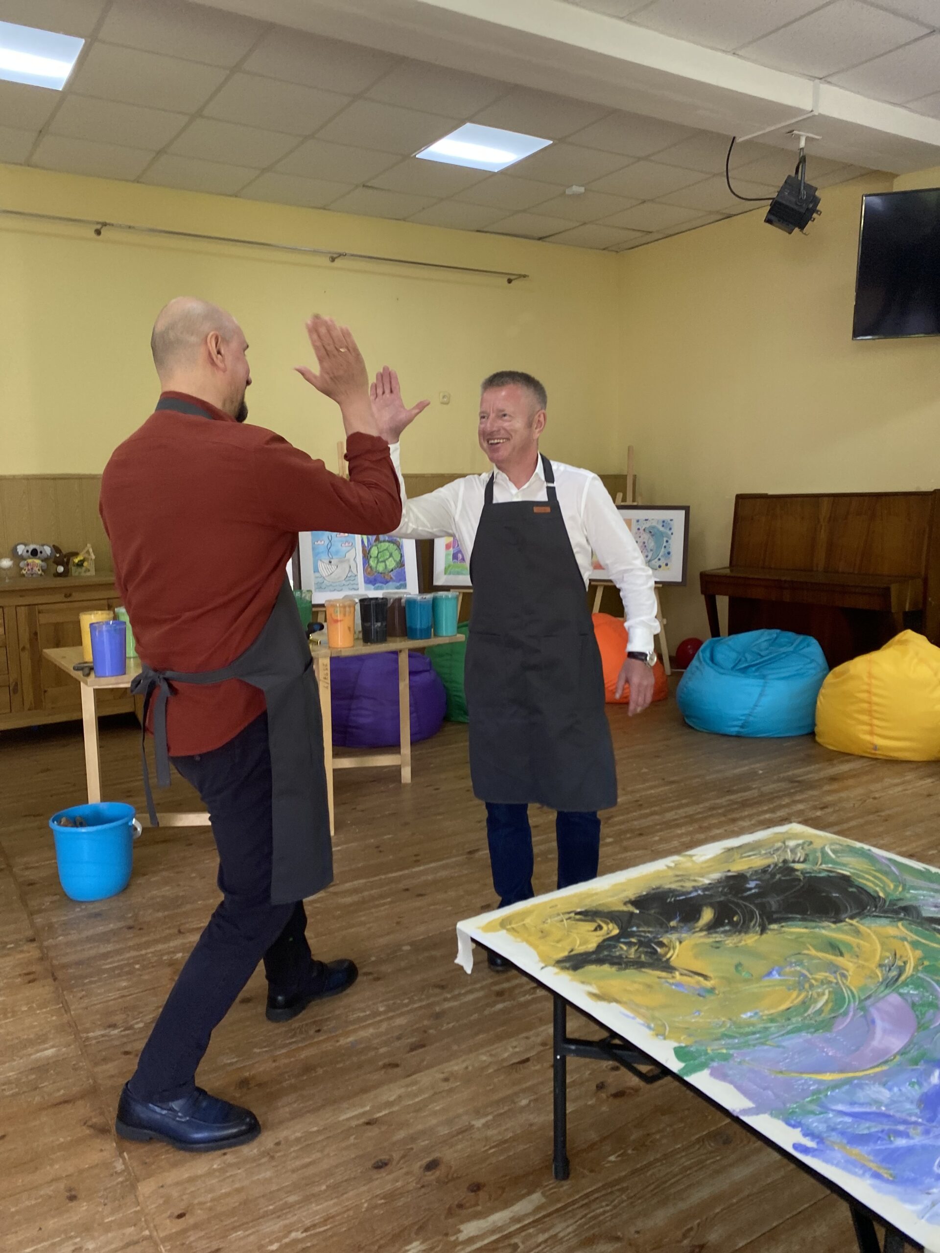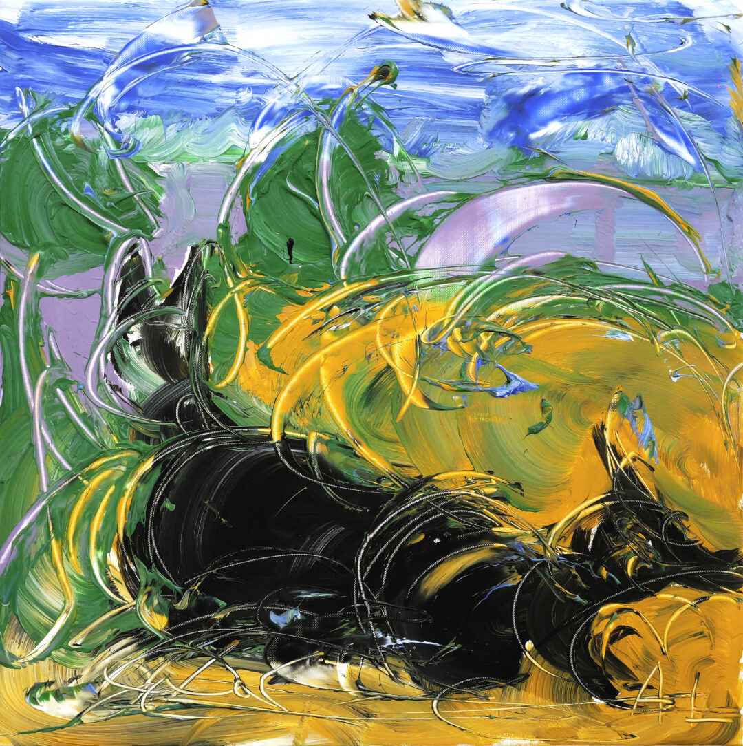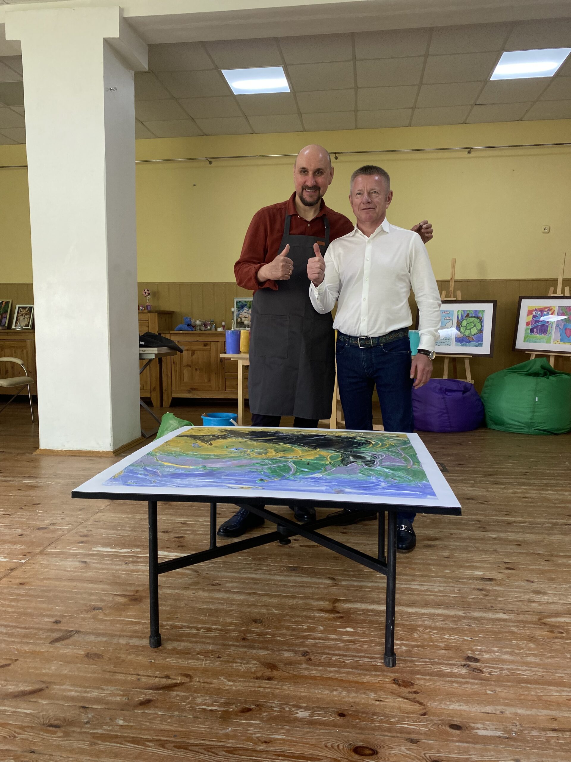 Тепло его дома когда-то дополняла маленькая собачка Алиса — верный друг, проживший 17 лет рядом с хозяевами. Именно Алиса однажды привела домой крошечного котёнка. Так в семье появилась кошка Боня, ставшая верной спутницей собачки. Эта история о дружбе и преданности настолько трогает сердце Александра Ивановича, что на арт-встрече с художником Сергеем Дасом он решил увековечить память о своих питомцах на полотне — как символ любви, благодарности и единства.