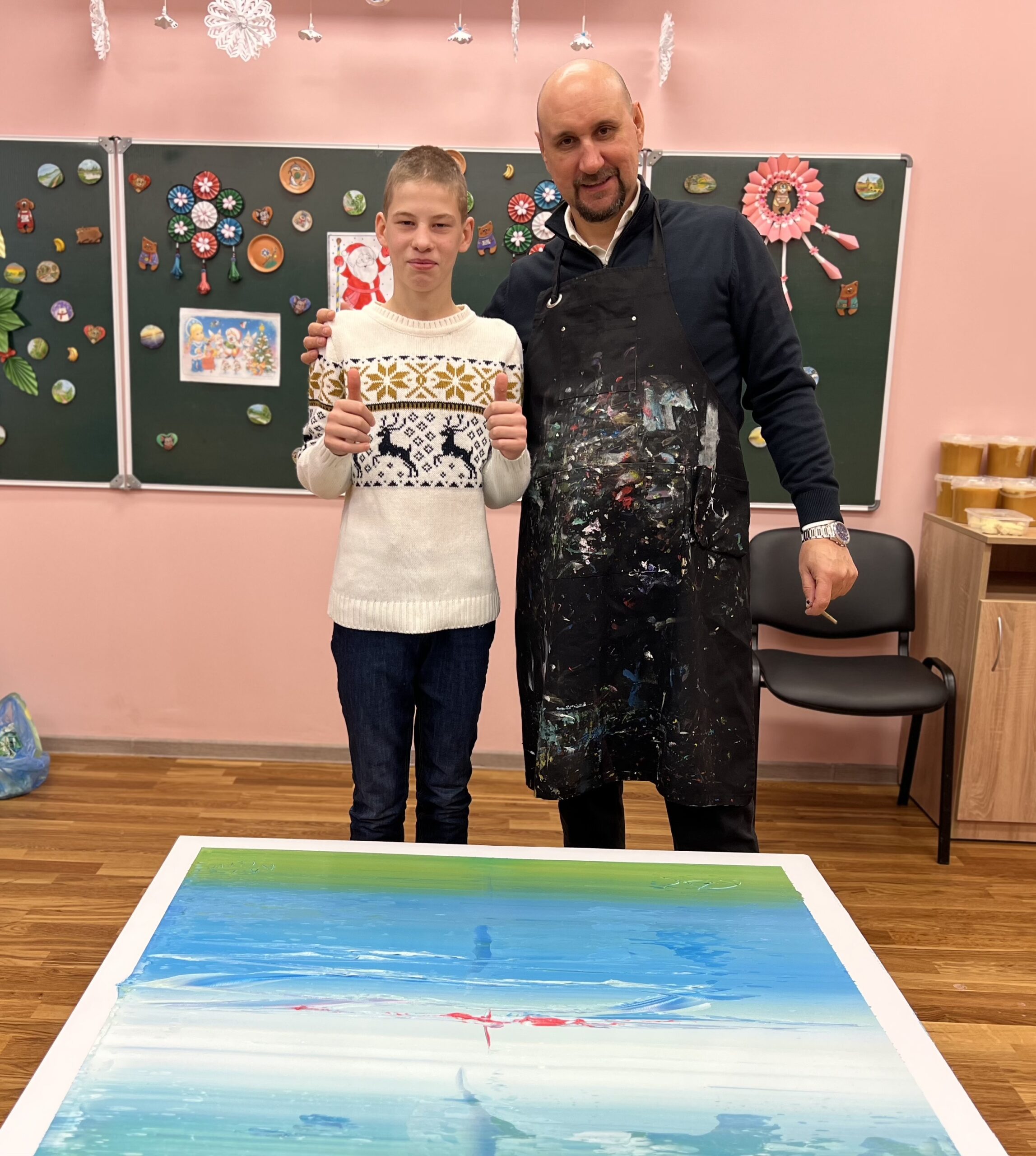 На встрече с художником Сергеем Дасом Слава вдруг почувствовал тихую тоску по теплу — по солнцу, по простору, по свободе. И тогда он захотел нарисовать лето и море. Пока за окном звенела зимняя стужа, на его холсте задышала другая реальность: заискрилось лазурное море, мягко зашелестела изумрудная трава, золотое солнце наполнило всё вокруг светом и надеждой.